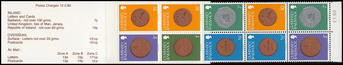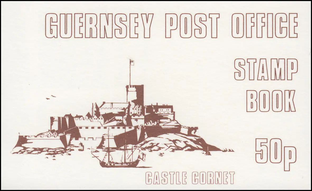 Guernesey Carnet de marque 13 pièces Carton feuille 13 Castle Cornet siena 1980, **
