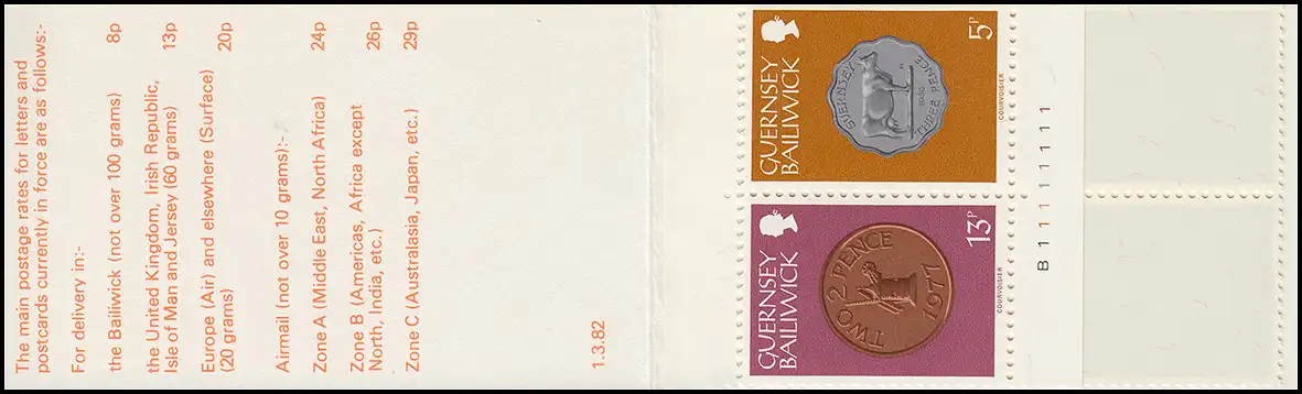 Guernesey Carnets de marques 16 pièces Fort George orange 1982, **