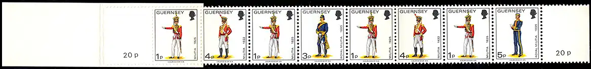 Guernesey Carnets de marques 3 uniformes 20 Pence 1977, **