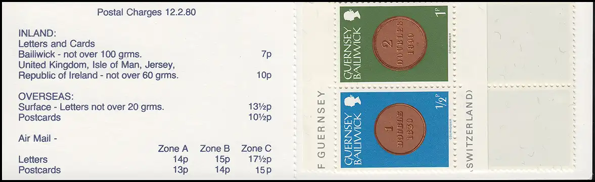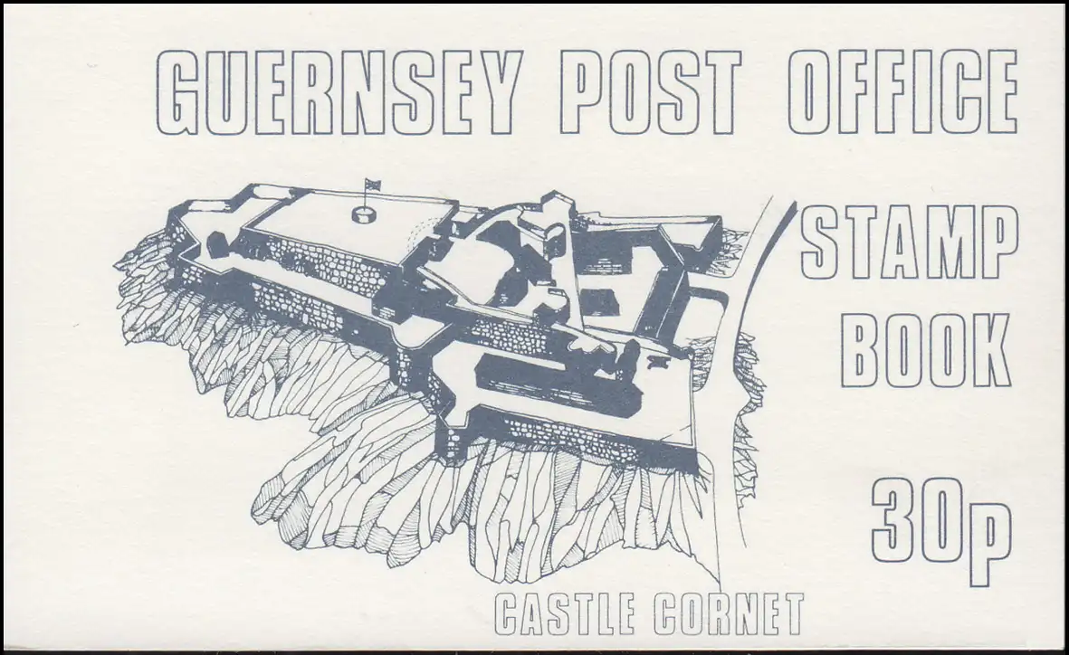 Guernesey Carnet de marque 9 pièces Carton feuille 9 Castle Cornet bleu 1980, **