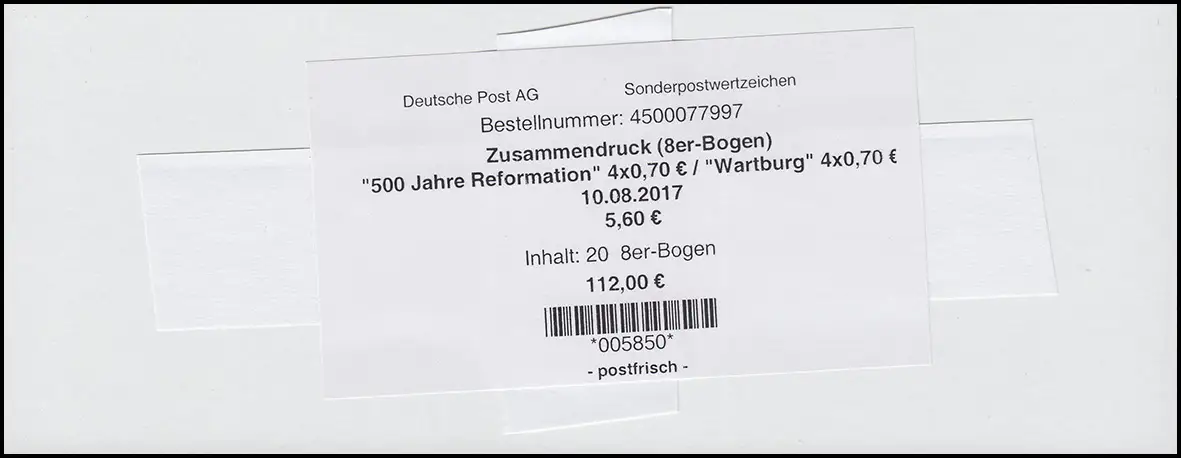 HBl. 51 Luther / Wartburg - Banderole pour 20 feuilles non pliées