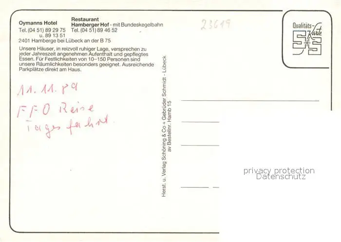 Hamberge_Holstein Oymanns Hotel Restaurant Hamberger Hof Gaststube Bar Panorama Hamberge_Holstein postalisch nicht gelaufen 1989 Erhaltung siehe scans [WerneD78] WernPID7