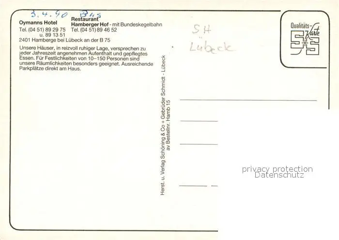 Hamberge_Holstein Oymanns Hotel und Hamberger Hof Restaurant Landschaftspanorama Hamberge_Holstein postalisch nicht gelaufen 1990 Erhaltung siehe scans [FriedD77] Frierer