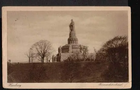 Hamburg. Bismarckdenkmal - Gebraucht. 24.07.2024. Keine Briefmarke aber Spuren ihres Klebers/Eckknick.(NPLZ 20000)