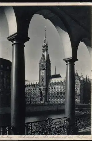 Hamburg. Blick auf die Alsterarkaden auf das Rathaus - Gebraucht. 25.08.1931. Knick. (NPLZ 20000)