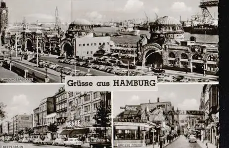 Hamburg. Grüsse aus. Landungsbrücken, Reeperbahn