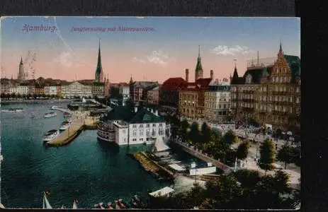 Hamburg. Jungfernstieg mit Alsterpavillon - Gebraucht. Briefmarke beschädigt/kl. Knick .(NPLZ 20000)