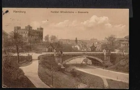 Hamburg. Kersten Milesbrücke.Seewarte - Gebraucht. 28.04.1913. (NPLZ 20000)