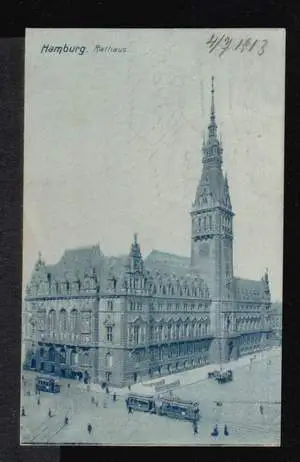 Hamburg. Rathaus - Gebraucht. 04.07.1913. Kl. Eckknick.(NPLZ 20000)