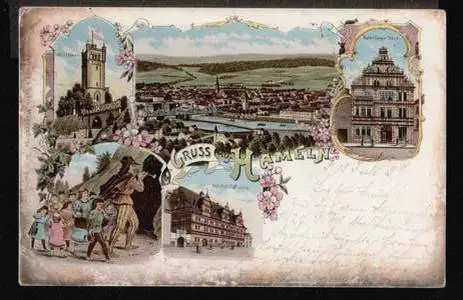 Hameln. Gruss aus. Rattenfängerhaus, Klütthurm, Hochzeitshaus - Gelaufen. 1899. (NPLZ 31780) Posiadamy rowniez konto zlotowkowe w Polsce.