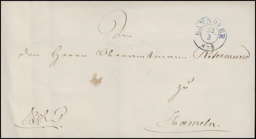 Hannover Dienstpost Coiffe à deux circuits Tampon HANNOVER 22.3. après Hameln