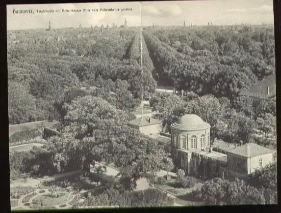 Hannover. Totalansicht mit Herrenhäuser Allee vom Palmenhause gesehen - Nicht gelaufen. (NPLZ 30000)