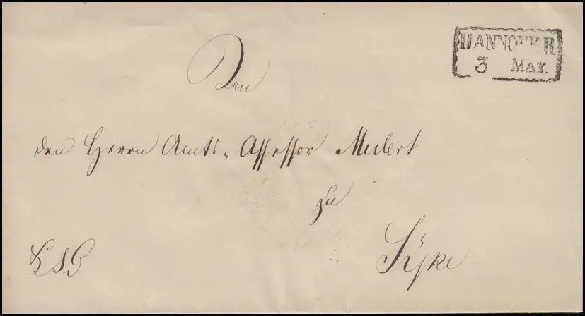 Hannover Vorphilatelie Coiffe de lettre Stamp de cadre HANNOVER 3 Mar. après Syke