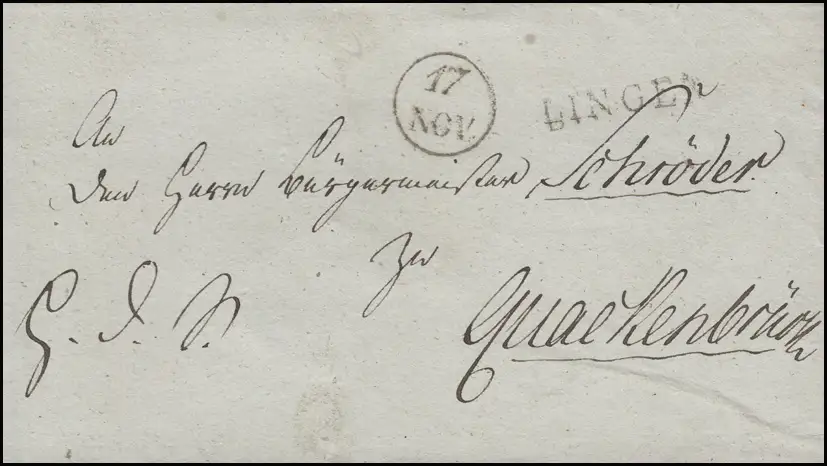 Hannover Vorphilatelie Enveloppe de lettre Einzeiler LINGEN et le timbre de cercle 17 NOV.