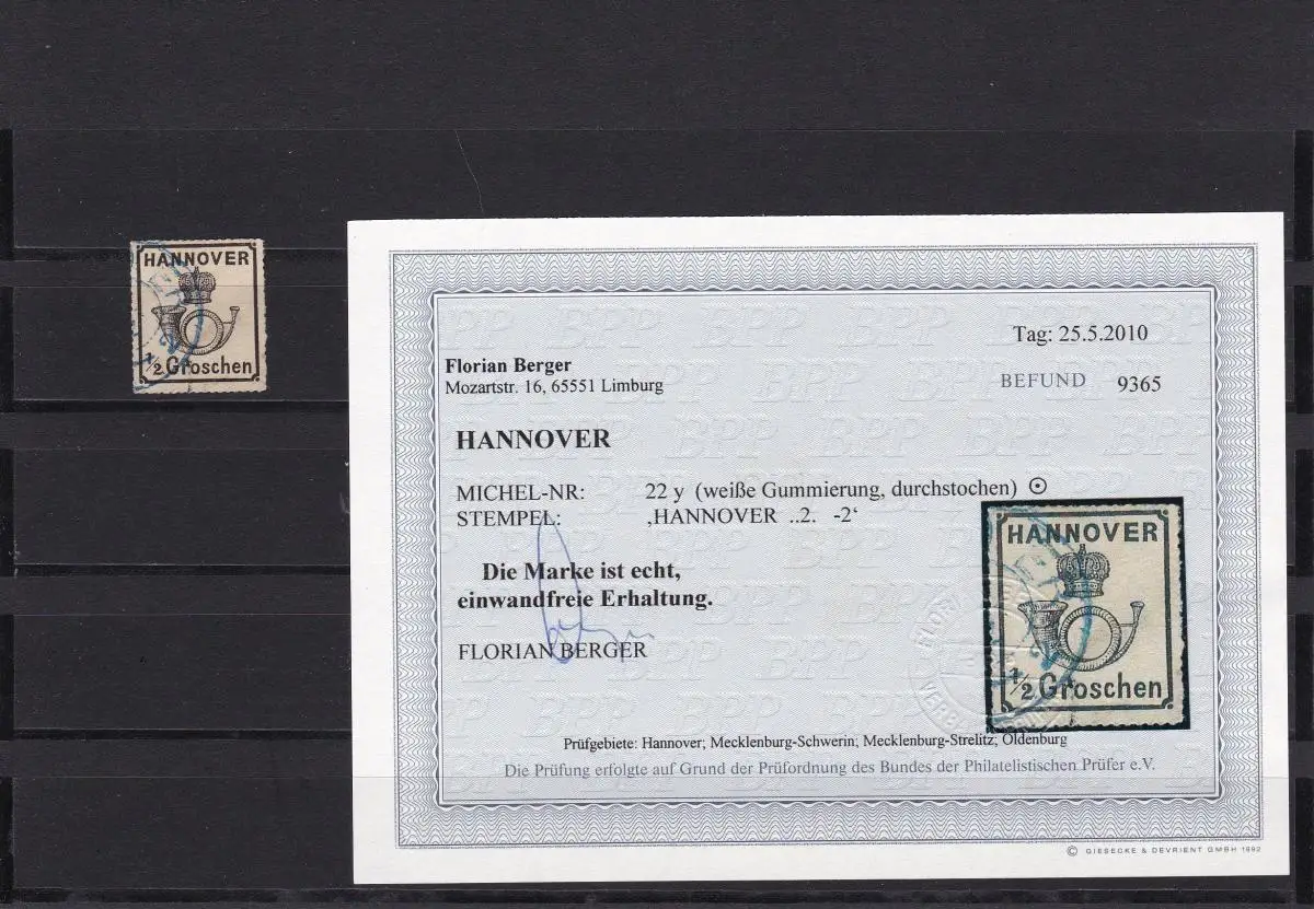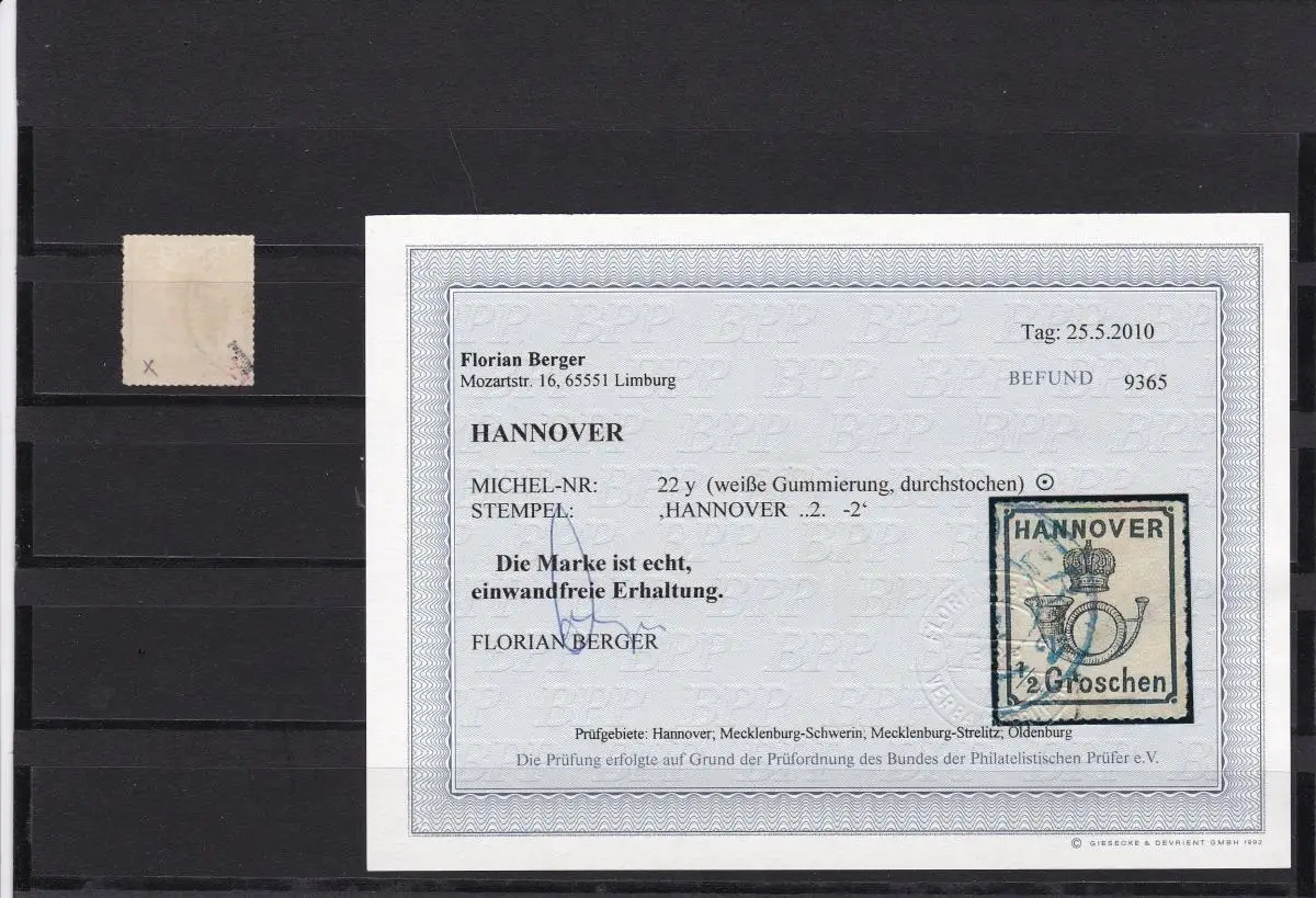 Hanovre: MiNr. 22y, cacheté, résultat BPP