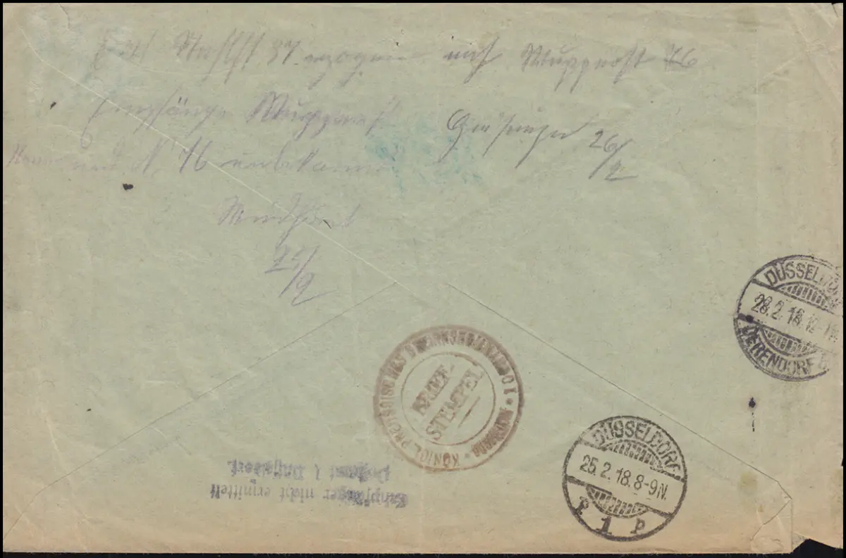 Heeresschichte Ministerskommando de Düsseldorf R-Lettre DÜSSELDORF-DErendORf 25.2.1918