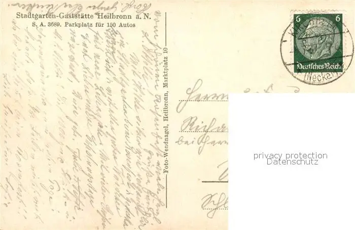 Heilbronn_Neckar Stadtgarten Gaststaette Heilbronn Neckar postalisch gelaufen 1937 Erhaltung siehe scans [LiesaD40] LiesID40