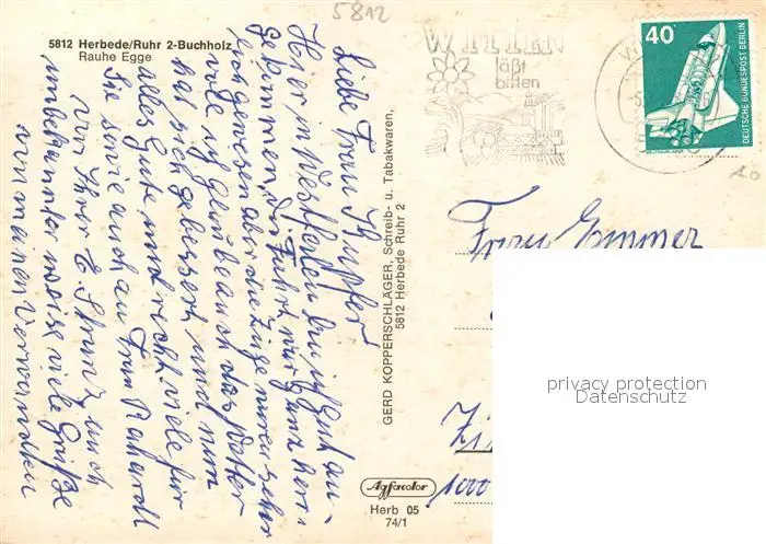 Herbede Rauhe Egge Herbede postalisch gelaufen 1977 Erhaltung siehe scans [WerneD78] WernPID7