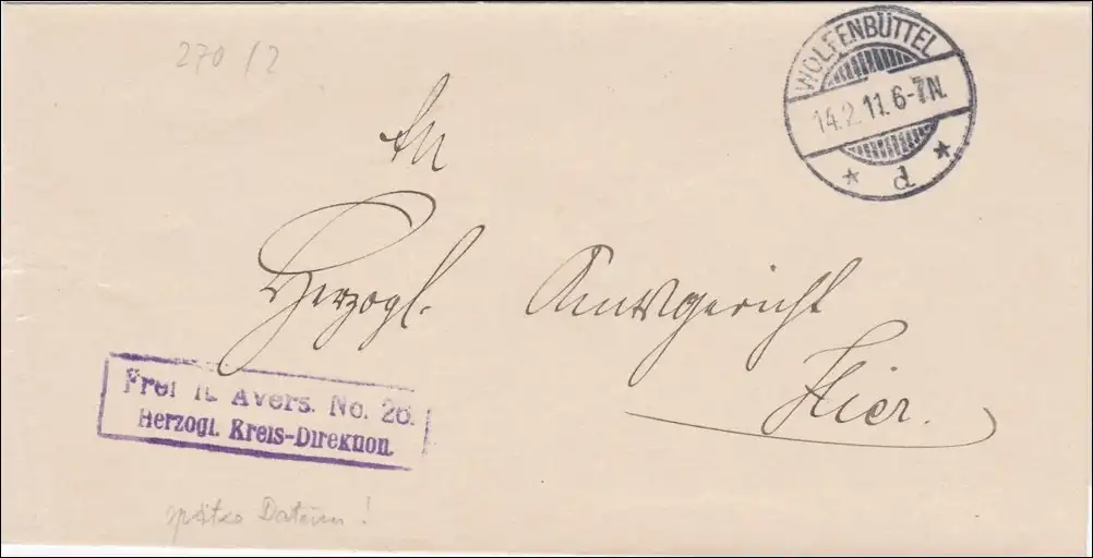 Herzogl. Braunschweiger/Lüneburger Direction - Wolfenbüttel 1911