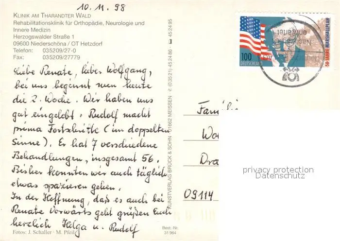 Hetzdorf_Niederschoena Klinik am Tharandter Wald Hallenbad Speisesaal Zimmer Waldpartie postalisch gelaufen 1998 Erhaltung siehe scans [WerneD78] WernPID7