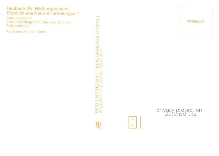 Heubach_Thueringen Cafe Heubach FDGB Erholungsheim Hermann Duncker Teilansicht Heubach Thueringen postalisch nicht gelaufen 1987 Erhaltung siehe scans [FriedD77] Frierer