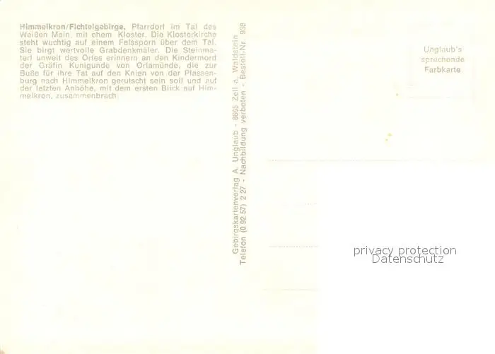 Himmelkron Panorama Fichtelgebirge Mainbruecke Stiftskirche Freibad Gedenkstein Marterlstein der Graefin von Orlamuende Himmelkron postalisch nicht gelaufen nach 1965 Erhaltung siehe scans [FriedD77] Frierer