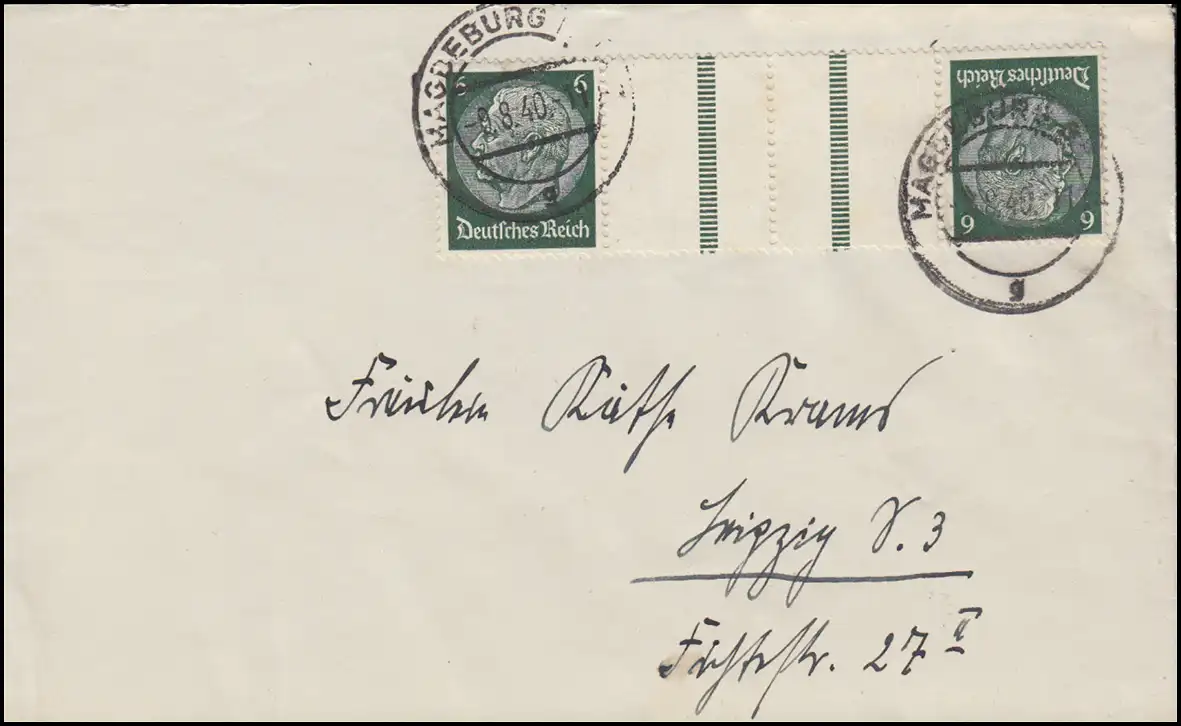 Hindenburg-Kormacht KZ 22.4. en tant qu'EF sur lettre MAGDEBURG 9.8.40 à Leipzig