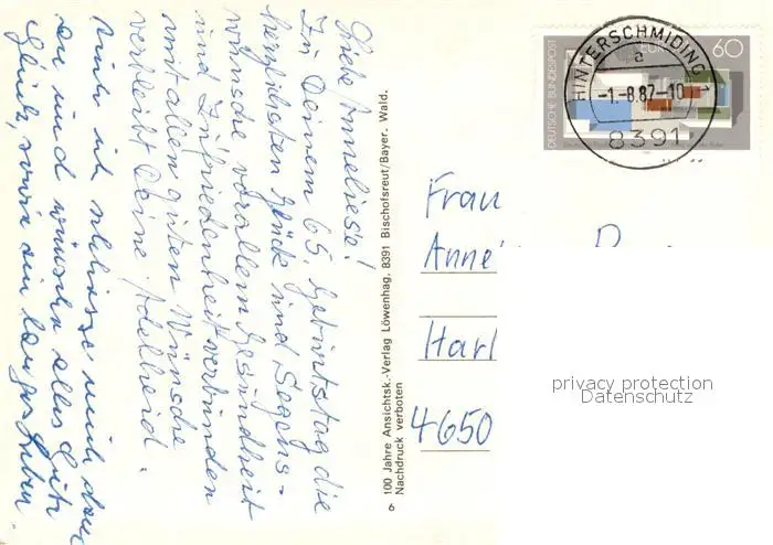 Hinterschmiding Panorama Nationalpark Bayerischer Wald Gipfelkreuz Felsen Bauernhof Hinterschmiding postalisch gelaufen 1987 Erhaltung siehe scans [FriedD77] Frierer