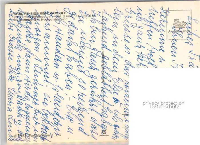Hinterzarten Hotel Pension Kesslermuehle im Schwarzwald Hinterzarten postalisch nicht gelaufen nach 1965 Erhaltung siehe scans [FriedD77] Frierer