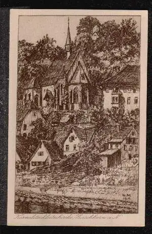 Hirschhorn. Karmeliterklosterkirche - Rückseite mit Text. 1922. (NPLZ 69430)