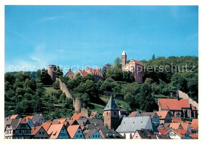 Hirschhorn_Neckar Stadtblick mit Schloss Hirschhorn Neckar postalisch nicht gelaufen nach 1965 Erhaltung siehe scans [WerneD78] WernPID7