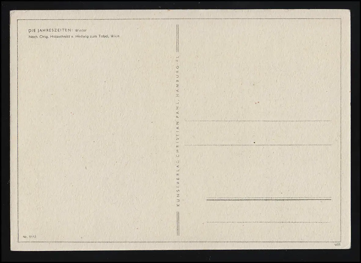 "Hiver" 51/ 13 Coupe de bois Hedwig à la tobel, édition Christian Pahl, non utilisé