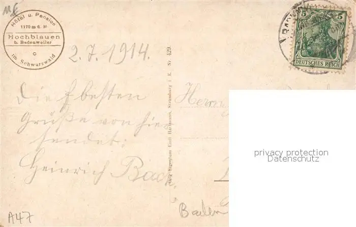 Hochblauen Ende Blauenstrasse Hotel Hochblauen postalisch gelaufen 1914 Erhaltung siehe scans [KathaD81] Kathoren