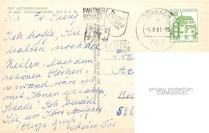 Hoechenschwand Fliegeraufnahme Hoechenschwand postalisch gelaufen 1981 Erhaltung siehe scans [WerneD78] WernPID7