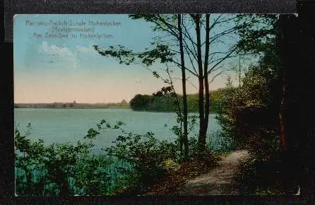 Hohen-Lychen. Am Zens-See - Gelaufen 1911. Rückseite mit Werbung. (NPLZ 17279)