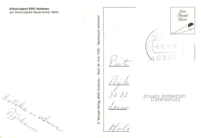 Hohenau_Niederbayern Panorama Bayerischer Wald Hohenau Niederbayern postalisch gelaufen nach 1965 Erhaltung siehe scans [FriedD77] Frierer