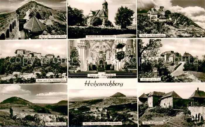 Hohenrechberg Ruine mit Blick zur Kirche Wallfahrtskirche Inneres Landschaftspanorama Hohenrechberg postalisch nicht gelaufen 1921-1965 Erhaltung siehe scans [FriedD77] Frierer