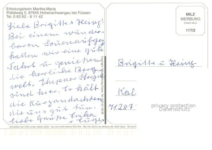 Hohenschwangau Kirche Schloss Neuschwanstein Alpenpanorama Erholungsheim Martha Maria Hohenschwangau postalisch nicht gelaufen nach 1965 Erhaltung siehe scans [FriedD77] Frierer
