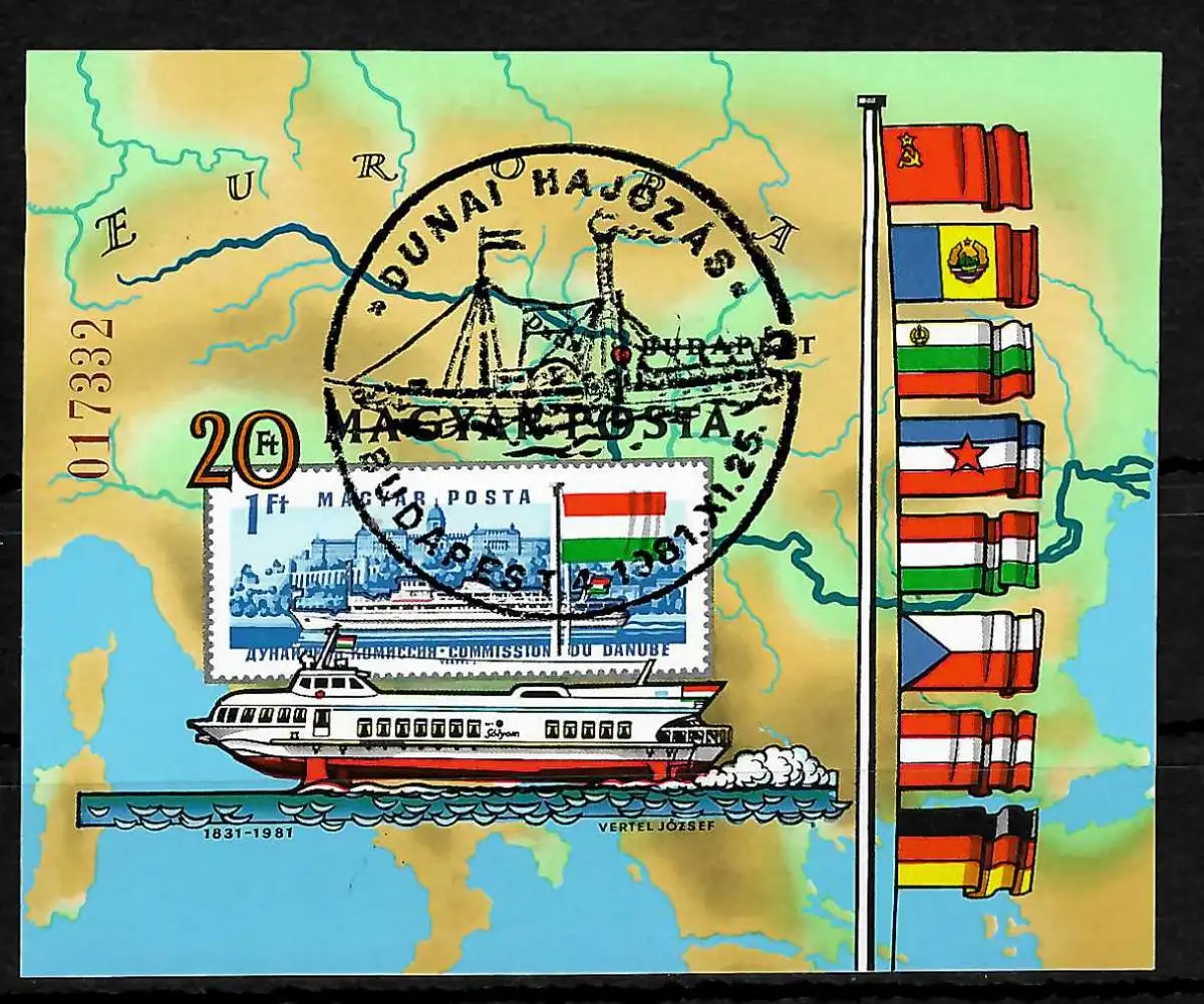 Hongrie: 125 ans Commission du Danube Navires du Donau #153B, cacheté