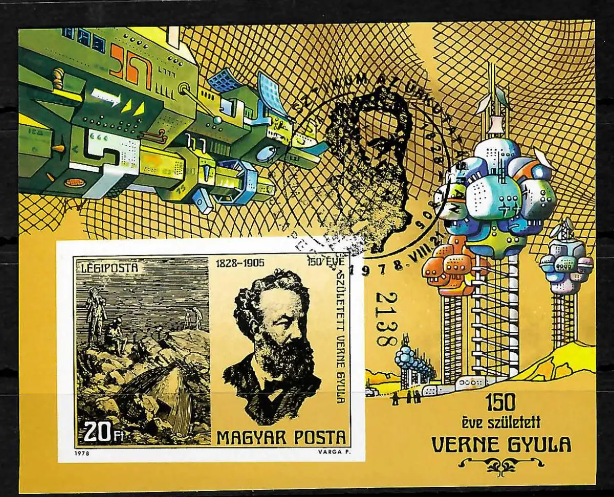 Hongrie: 150e anniversaire de Jules Verne #133B, cacheté
