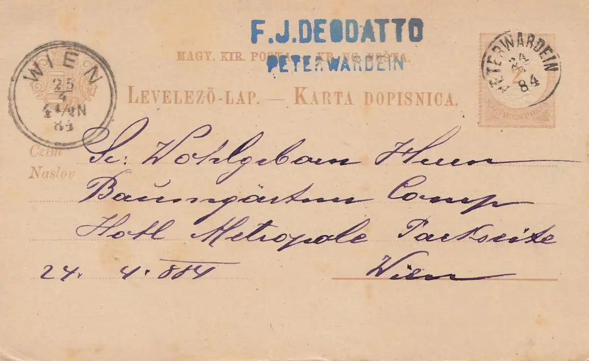 Hongrie: 1884: Tout le dossier Peterwardein à Vienne