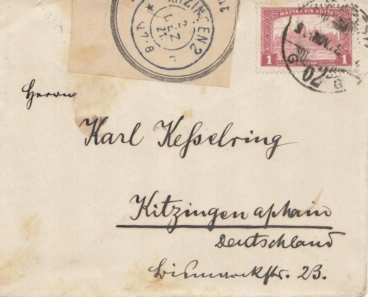 Hongrie: 1921: Lettre de Kitzingen, Bureau de poste Ouverture