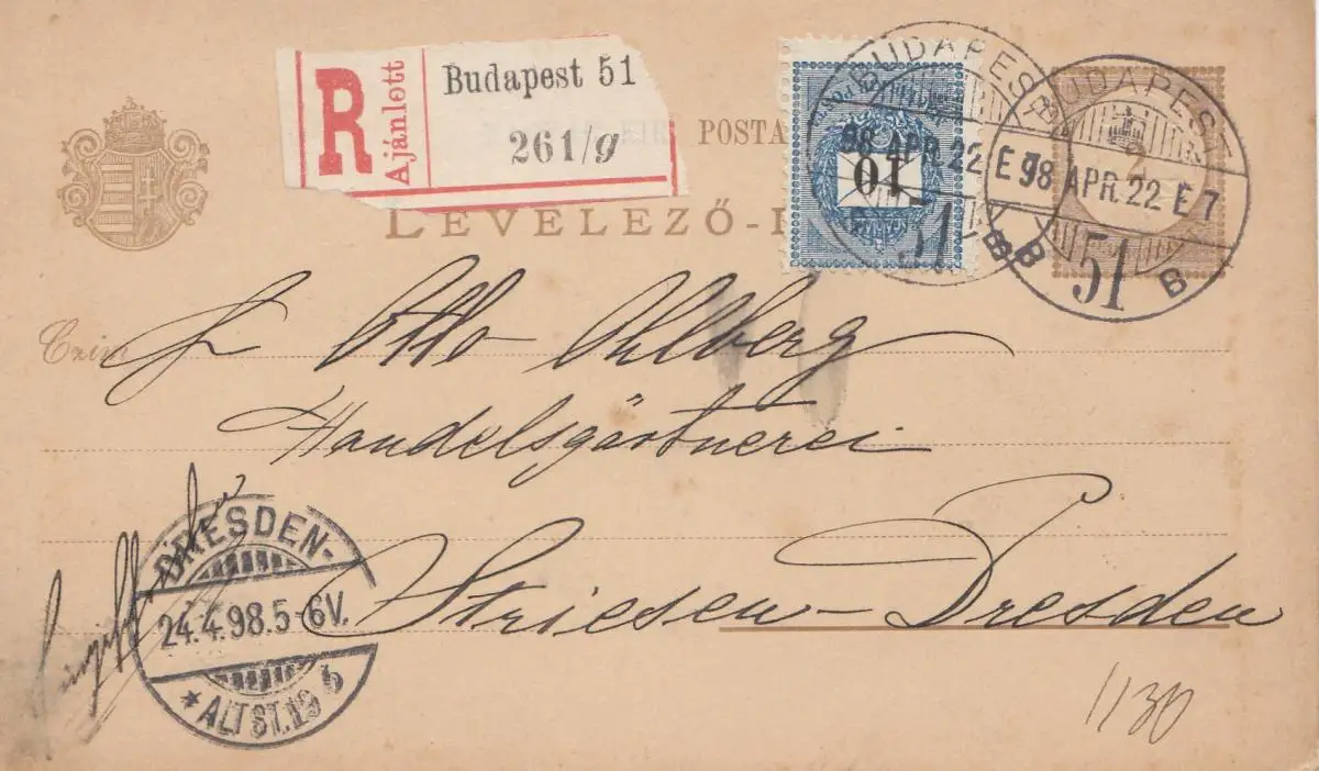 Hongrie: 1922: Inscription à Budapest - Entier à Dresde