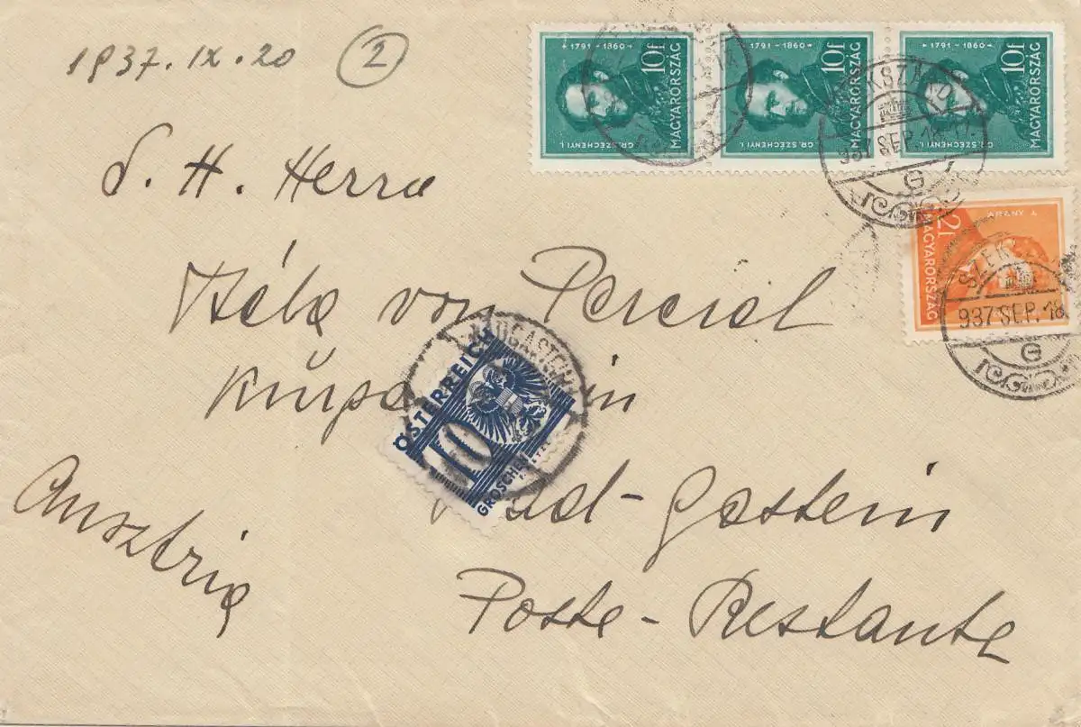 Hongrie: 1937: Lettre à Bad-Gastheim