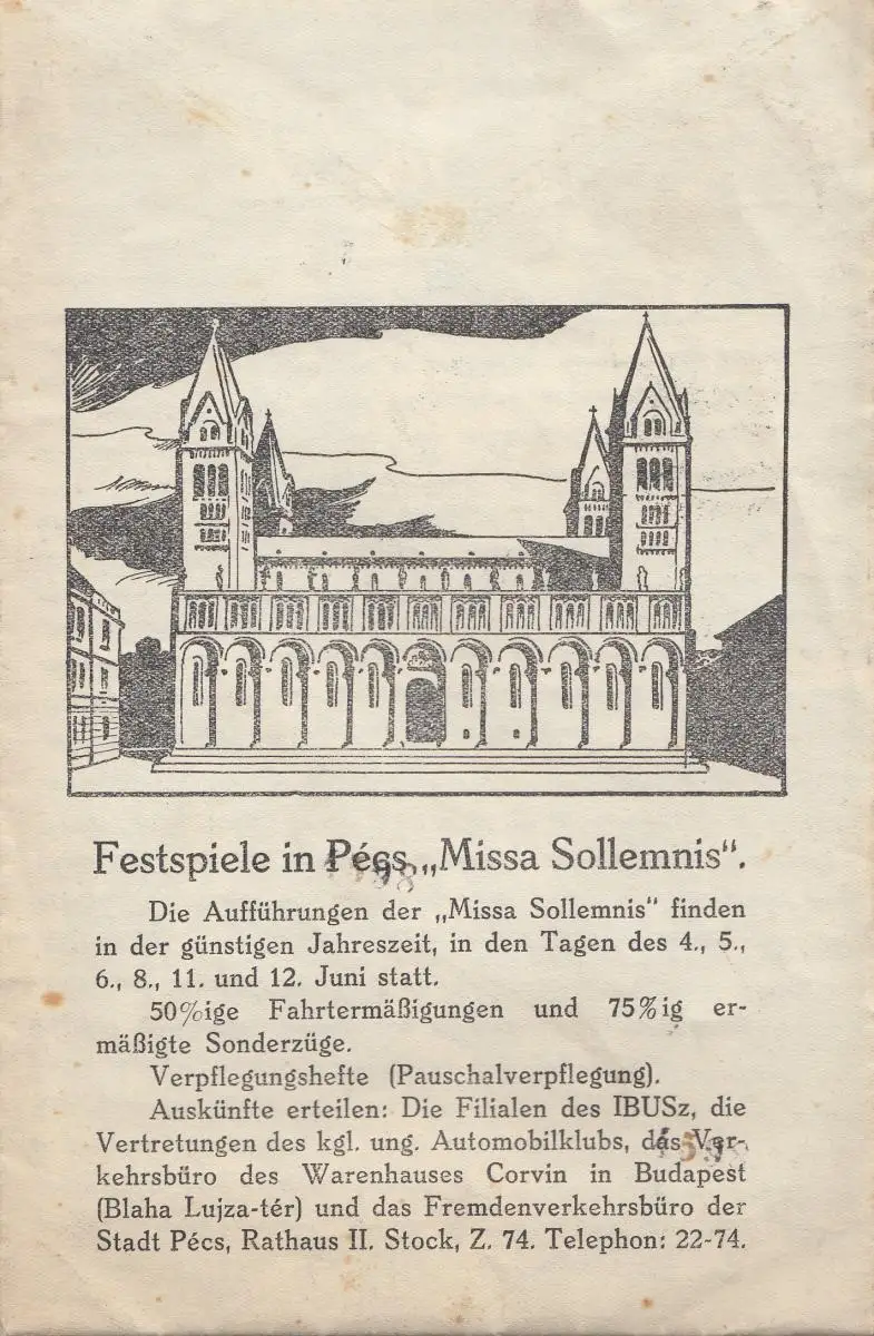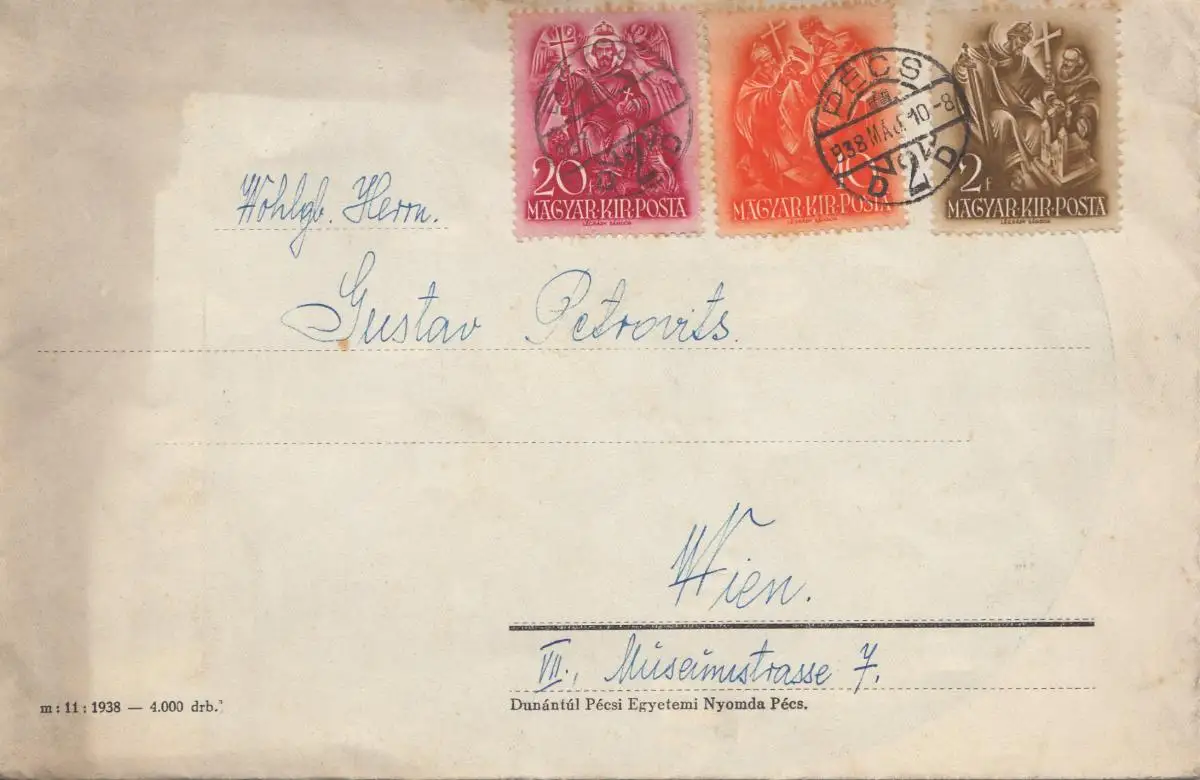 Hongrie: 1938: Pecs à Vienne, avec le contenu des festivals