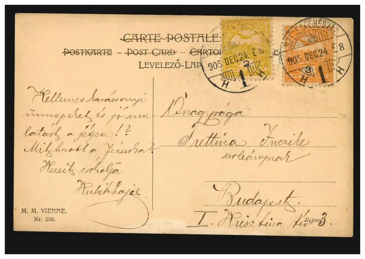 Hongrie Amour-AK Couple d'amour: La vue à travers la fenêtre, 24.12.1905