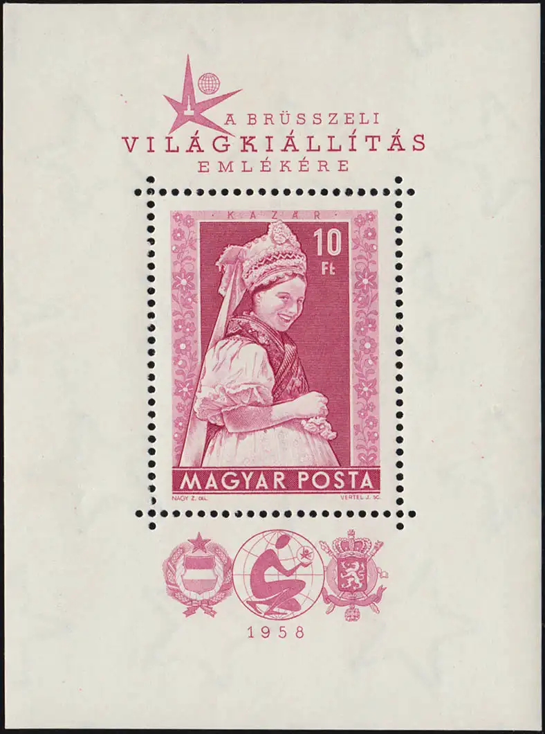 Hongrie: Block 27A Exposition universelle Bruxelles 1958, d'une dent, frais de port **