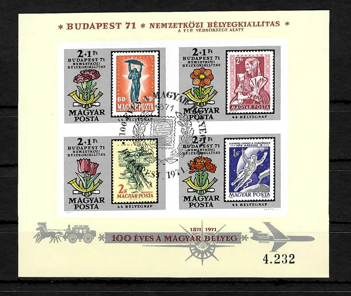 Hongrie: Exposition des timbres Budapest '71, bloc #83B, cacheté