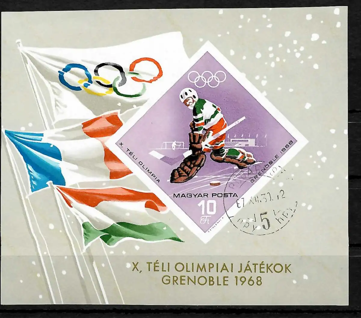 Hongrie: Jeux olympiques d'hiver 68, Grenoble, bloc #62B, cacheté