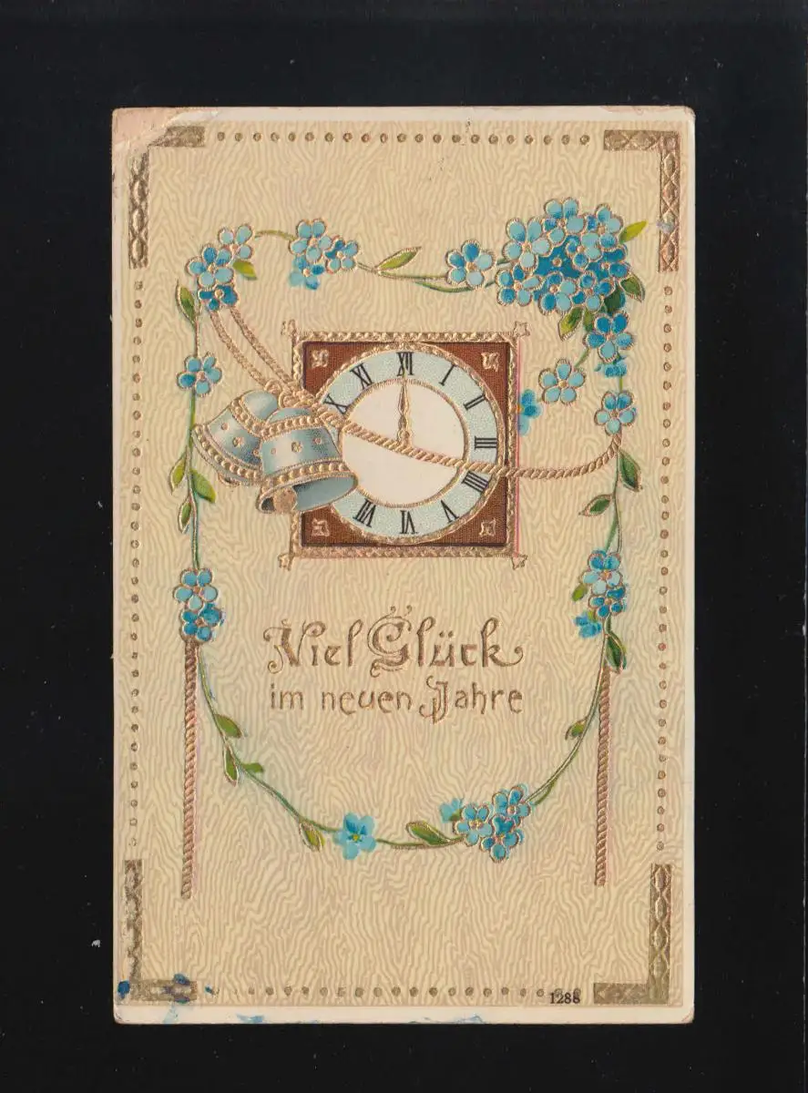 Horloge cloches bordure d'or Oubliez-moi pas de chance dans la nouvelle année, château 31.12.14